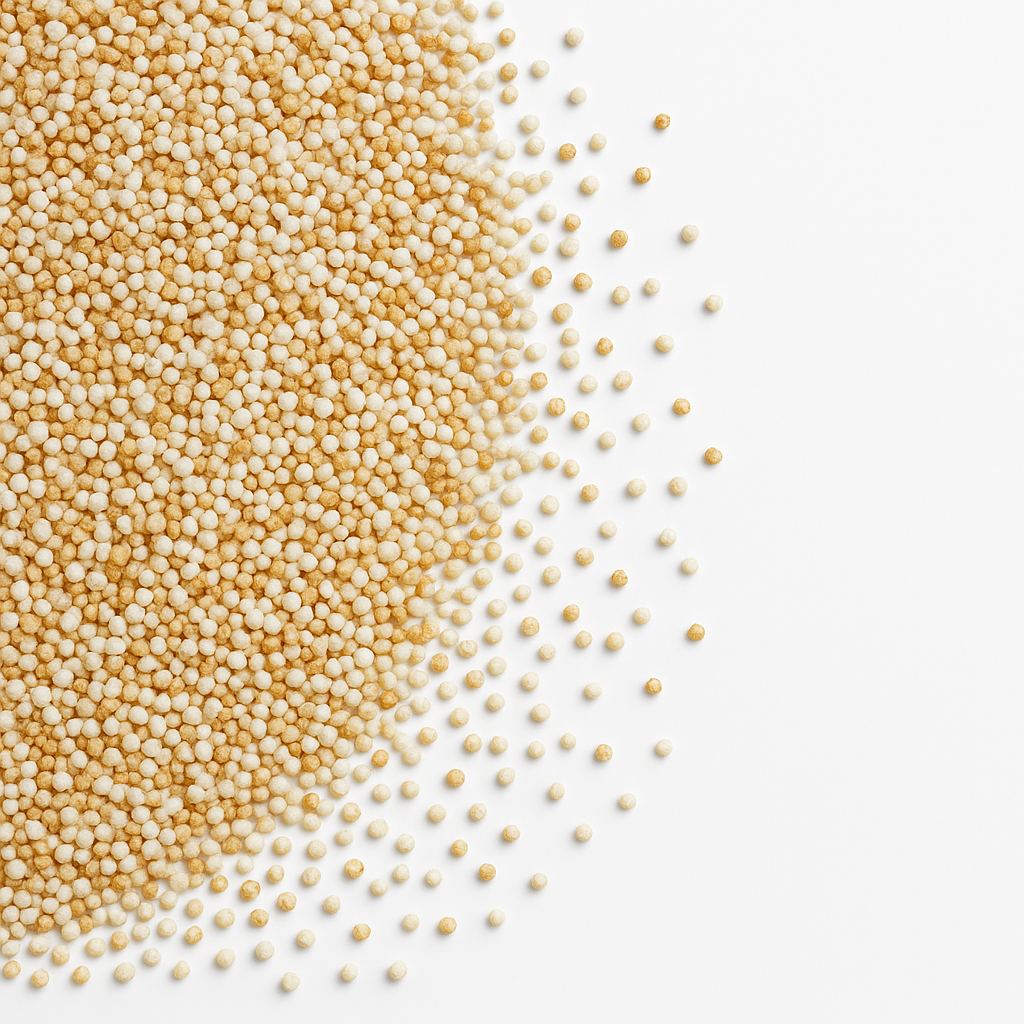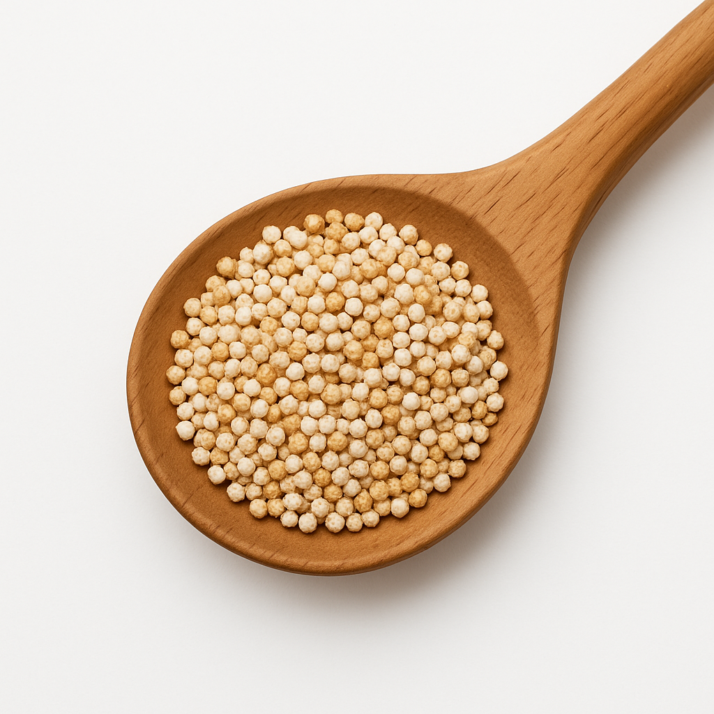 Amaranth war bereits als Urkorn in der Küche der Maya und Inka ein gern genutztes Nahrungsmittel. Er enthält von Natur aus kein Gluten. Gepufft überzeugen die kleinen Körnchen durch ein nussiges, leicht röstiges Aroma. Für alle, die kulinarische Abwechslung genießen und eine Proteinquelle suchen. Ideal im Müsli, für Riegel, Backwaren und Dessert-Zubereitungen.