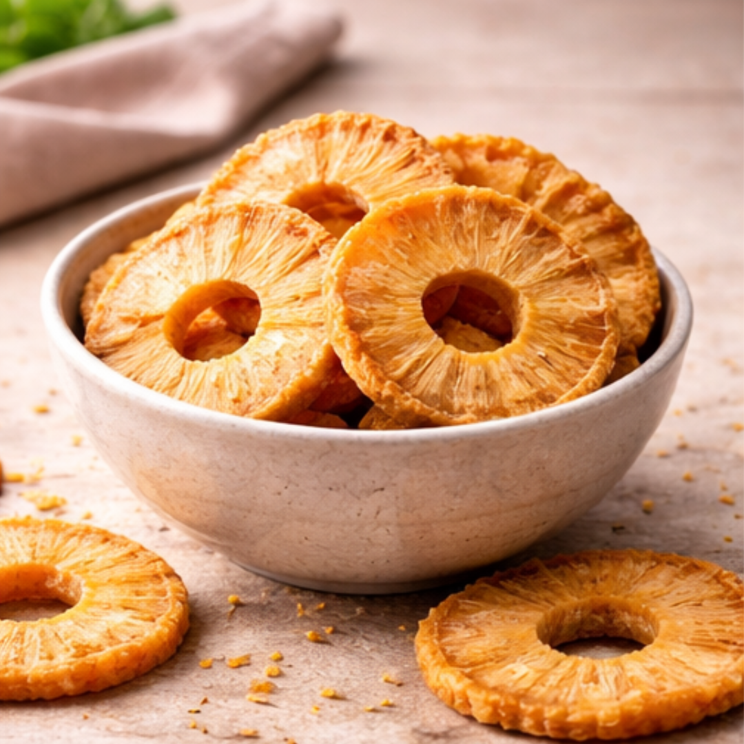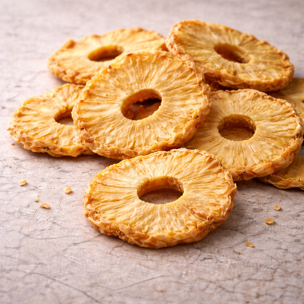 Premium Bio Ananasringe sind mit ihrem intensiven, fruchtigen und süß-säuerlichen Geschmack ein ganz besonderer Leckerbissen.