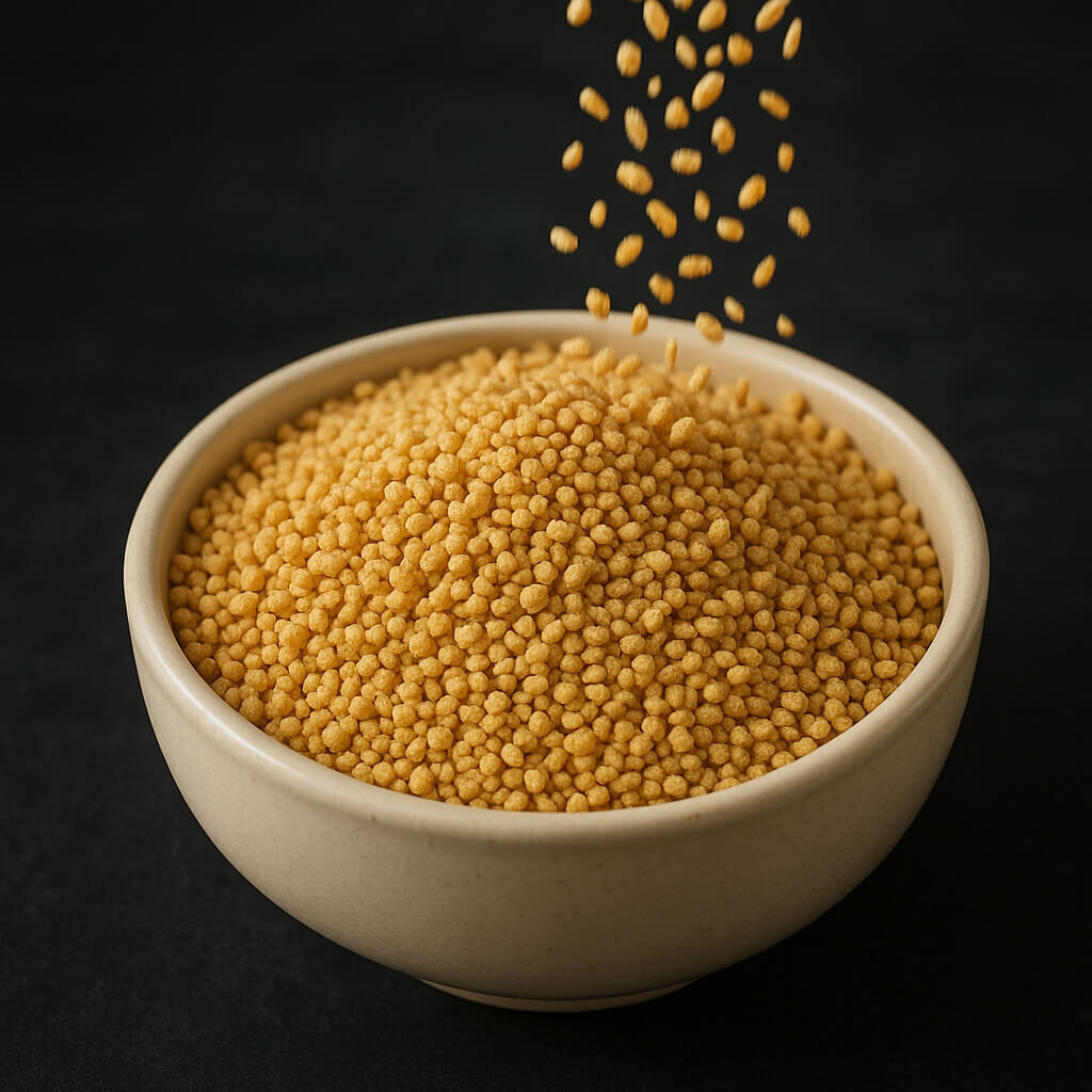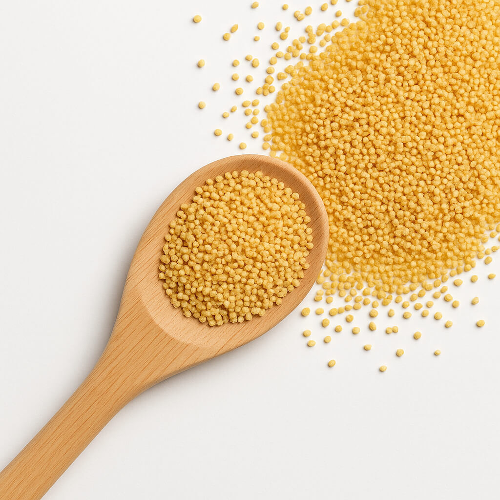 Couscous ist Hartweizengrieß, der in einem mehrstufigen Verfahren befeuchtet, zu Kügelchen gerollt, gekocht und getrocknet wird. Durch diesen Vorgang ist Couscous schnell zubereitet, stellt eine gute Proteinquelle und ist reich an Ballaststoffen. Lecker als Beilage, für Pfannengerichte, Salate und Füllungen.