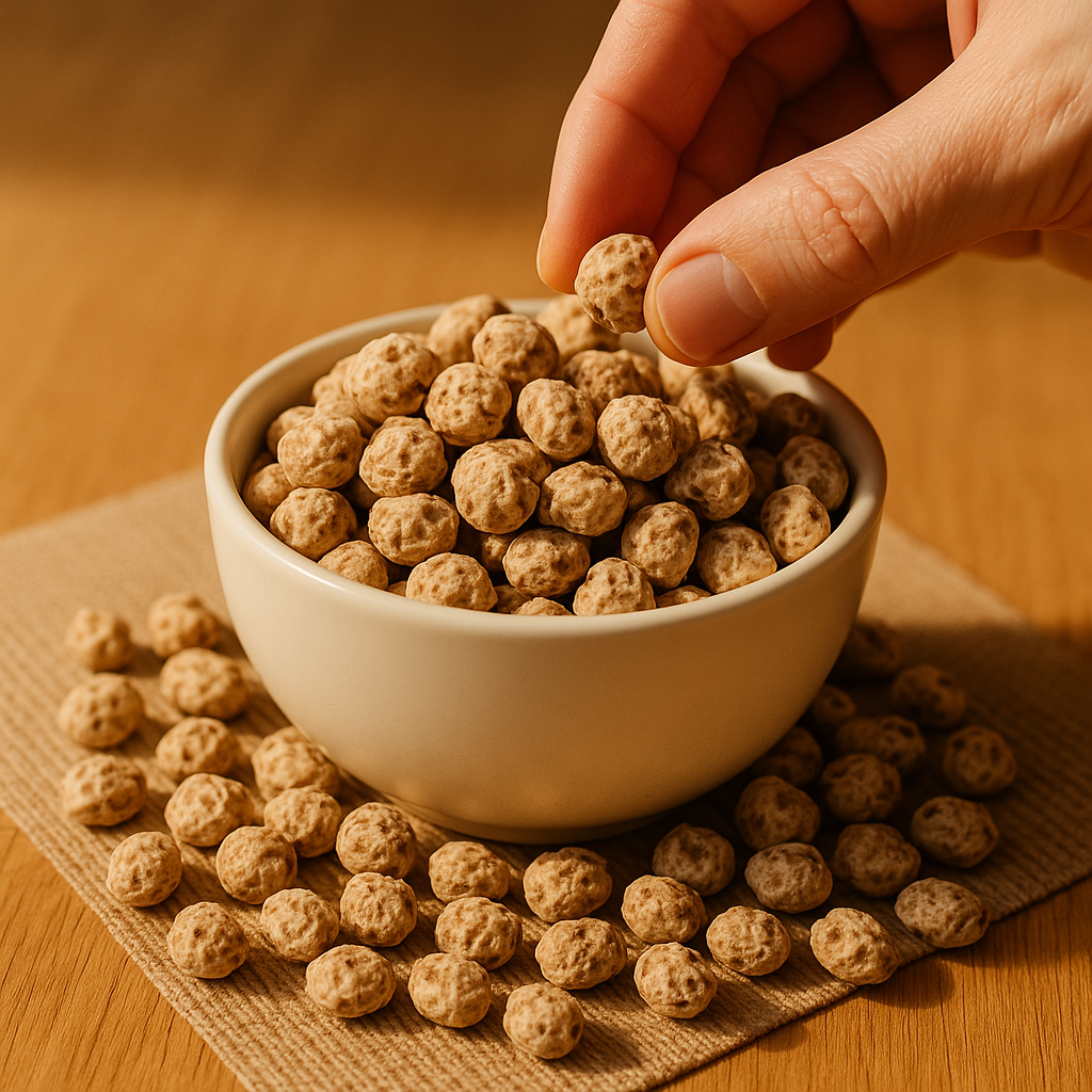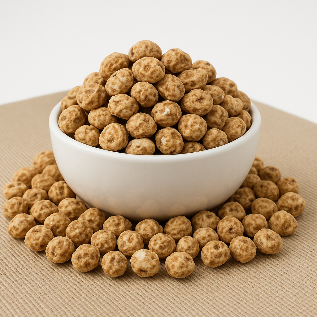 Die süßen, delikaten Knollenfrüchte sind keine Nüsse! Zum Knabbern, für Naschereien, Gebäck und Desserts.