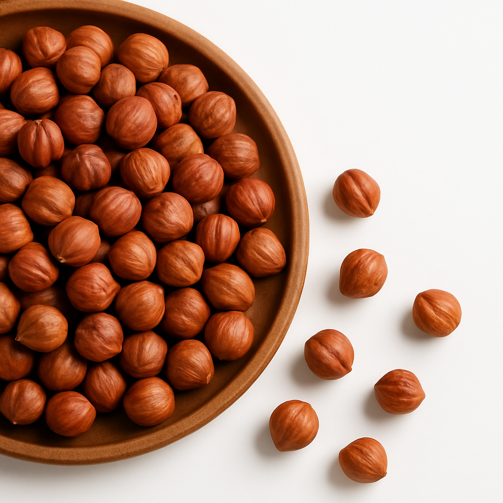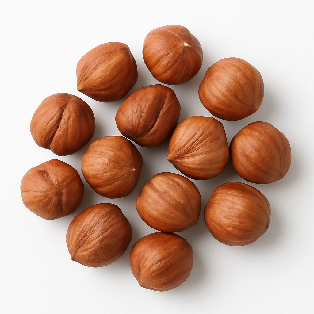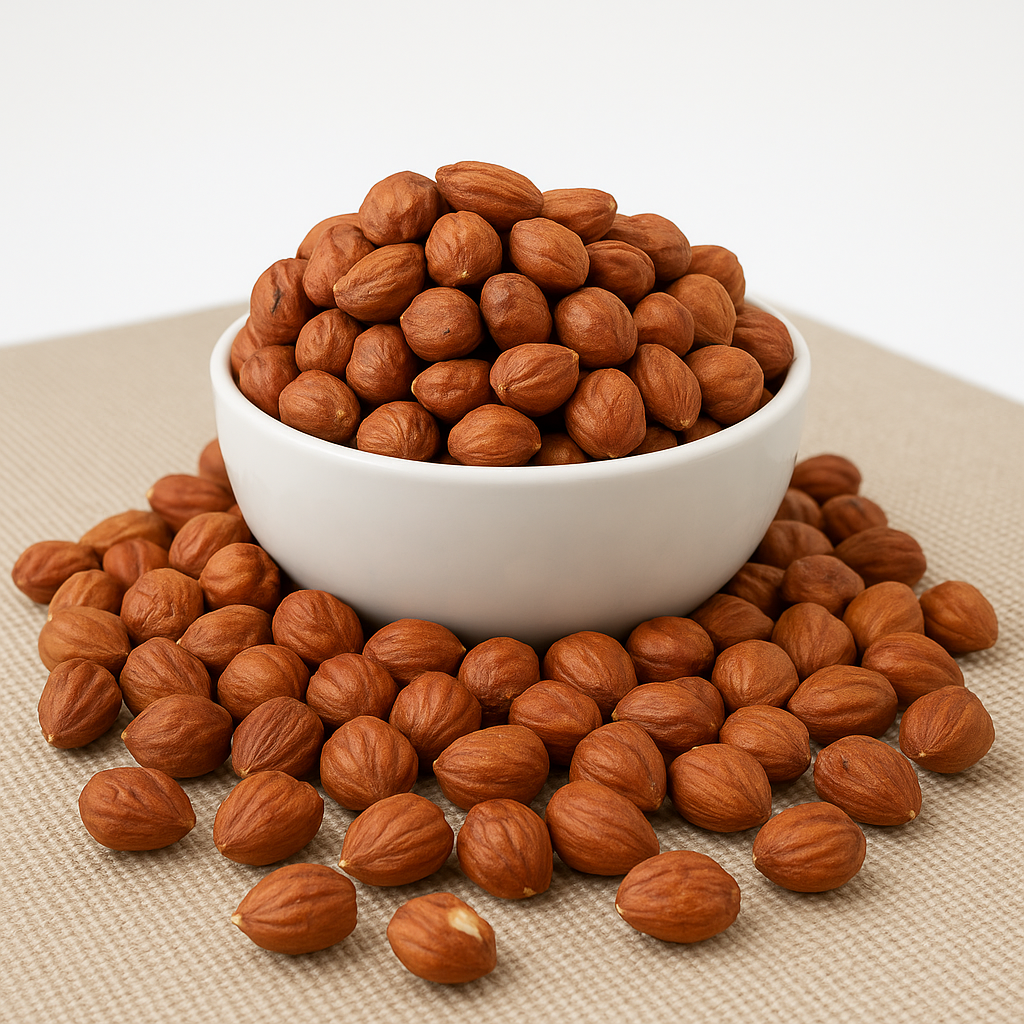 Die Haselnusskerne haben einen Durchmesser von ca. 9 bis 11 mm. Sie sind hell- bis mittelbraun, fest und knackig. Die Kerne haben einen aromatisch nussigen Geschmack und sind ballaststoffreich. Sie eignen sich zum Kochen und Backen, für Müsli, zum Knabbern und für Mischungen sowie für Desserts.