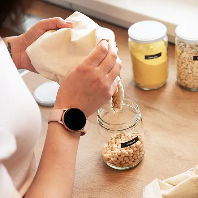 Verpackung wie Gläser oder Dosen mitbringt, wird weniger Verpackungsmüll