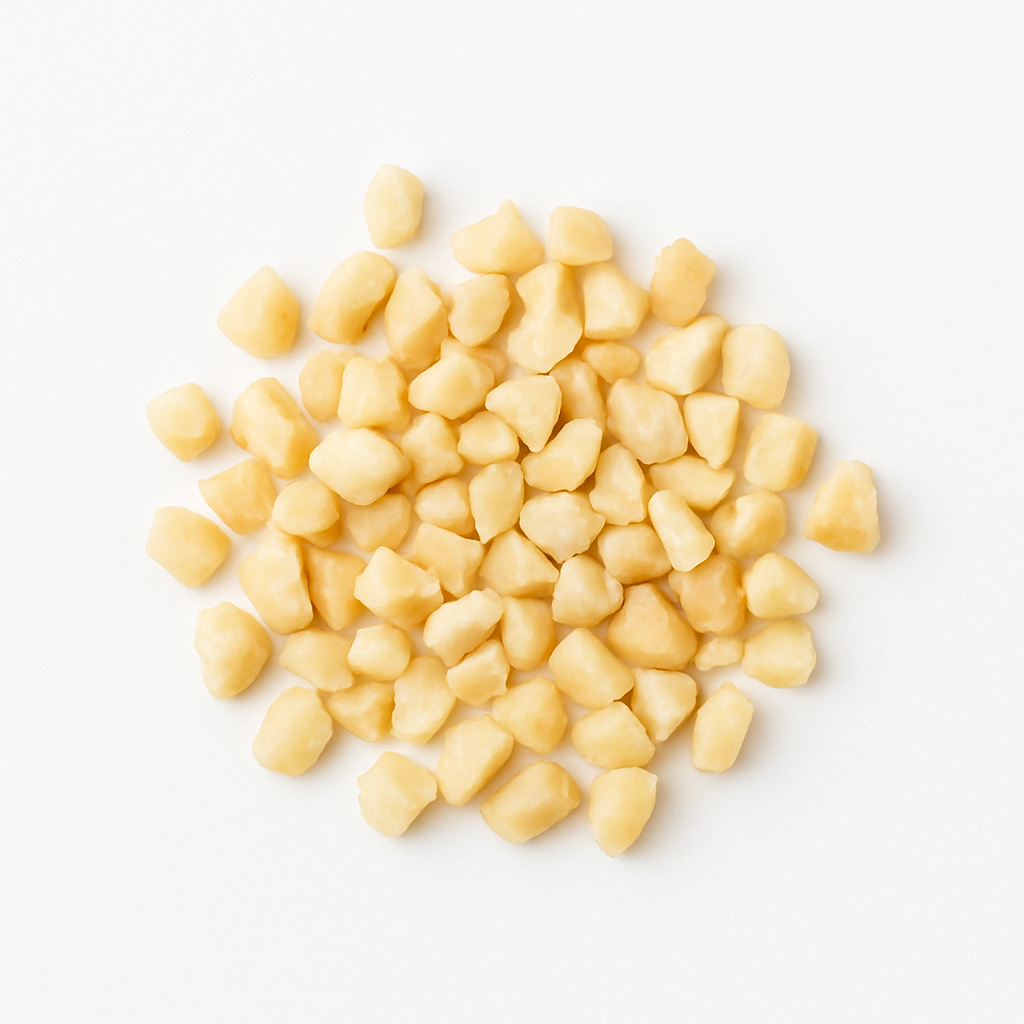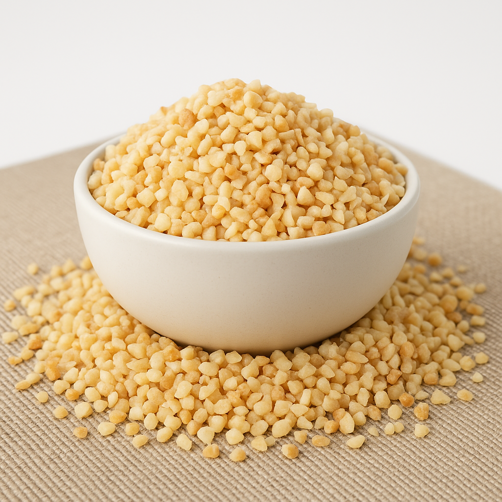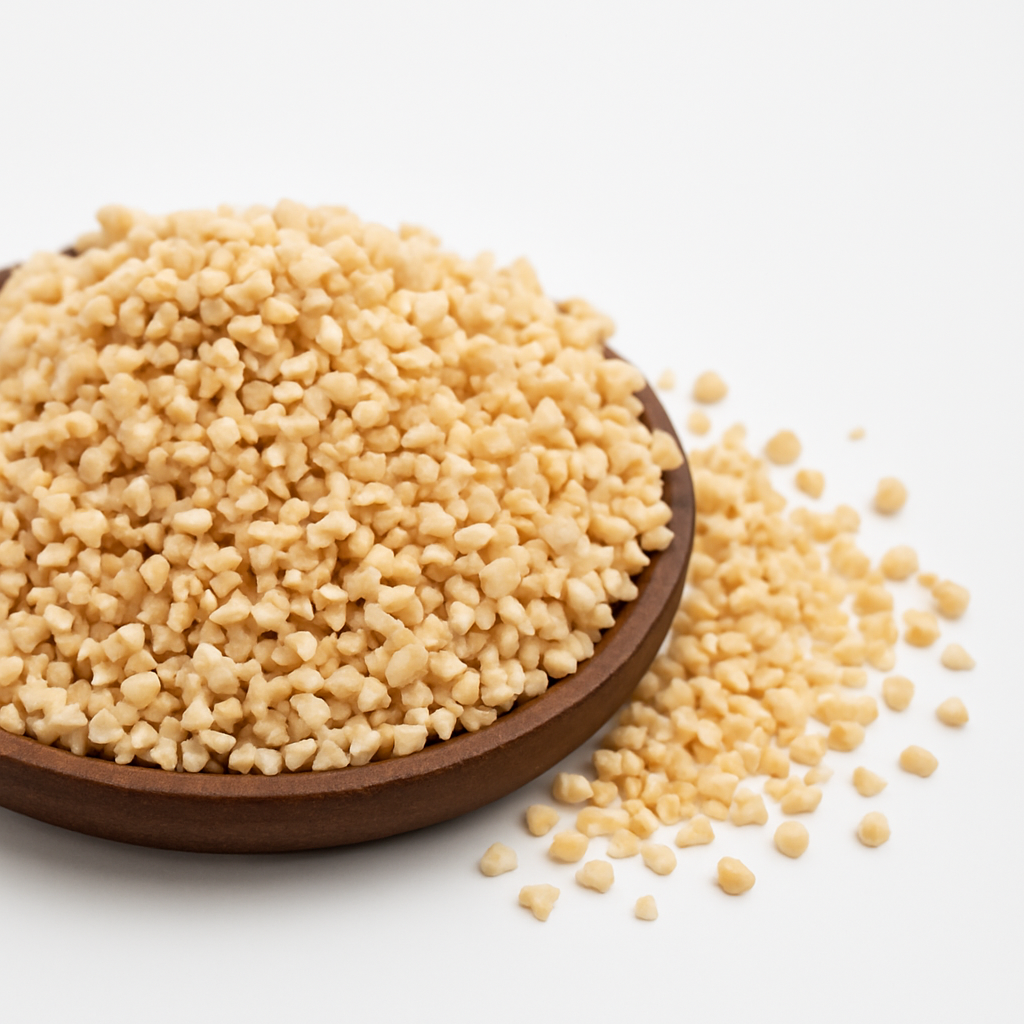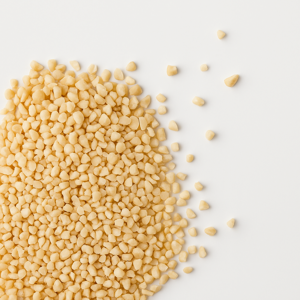 Wir verwenden nur europäische Mandeln! Sie schmecken deutlich nussiger und aromatischer als die Überseemandeln. Die Mandelkerne sind elfenbeinfarben, blanchiert und gehackt. Die braune Haut wurde sorgfältig mittels Wasserdampf entfernt. Die Stücke sind ca. 2 bis 6 mm groß. Sie sind knackig und bissfest. Mandeln liefern viele Ballaststoffe und sind eine Proteinquelle. Sie eignen sich hervorragend zum Knabbern, Backen, Kochen sowie für Mischungen und als Topping und für Desserts.