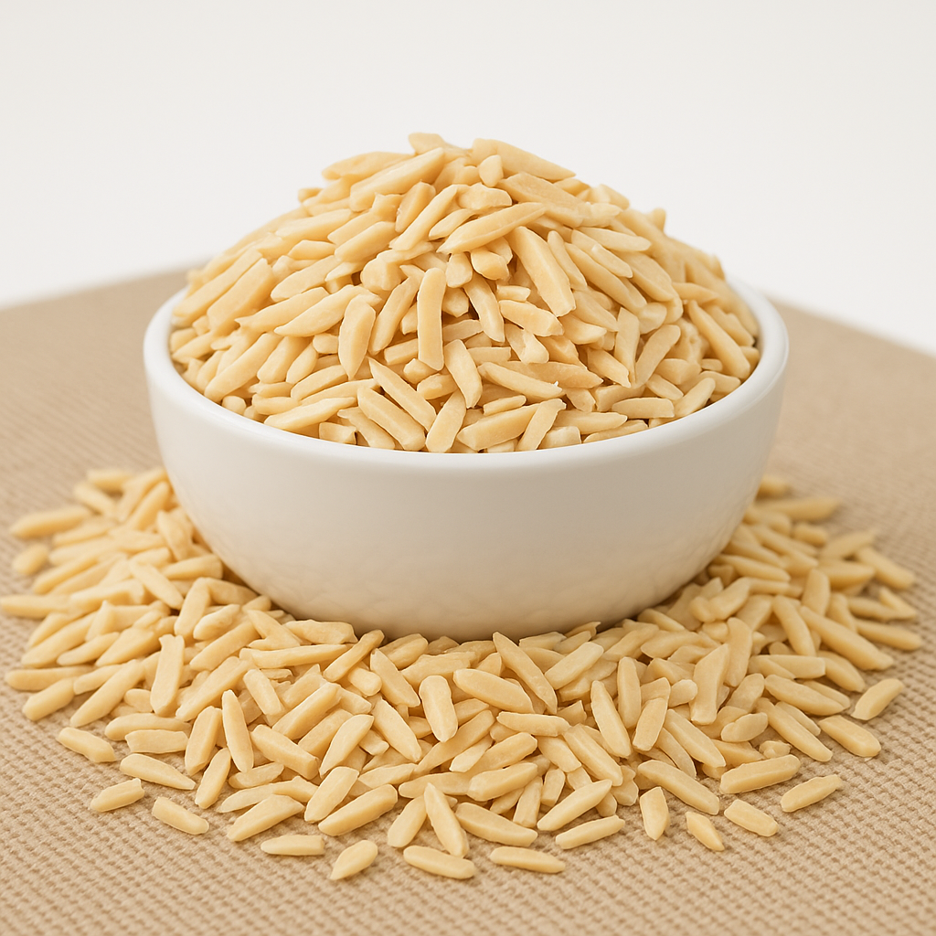 Wir verwenden nur europäische Mandeln! Sie schmecken deutlich nussiger und aromatischer als die Überseemandeln. Die Mandelkerne sind weiß bis hell-elfenbeinfarben, blanchiert und in feine Stifte geschnittene. Sie sind knackig und bissfest. Mandeln liefern viele Ballaststoffe und sind eine Proteinquelle. Sie eignen sich hervorragend zum Knabbern, Backen, Kochen sowie für Mischungen und als Topping und für Desserts.