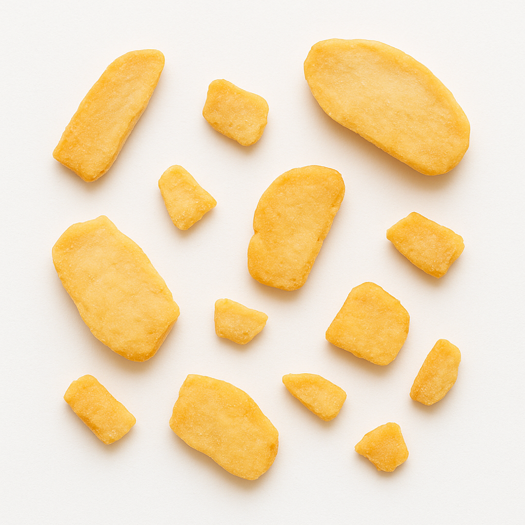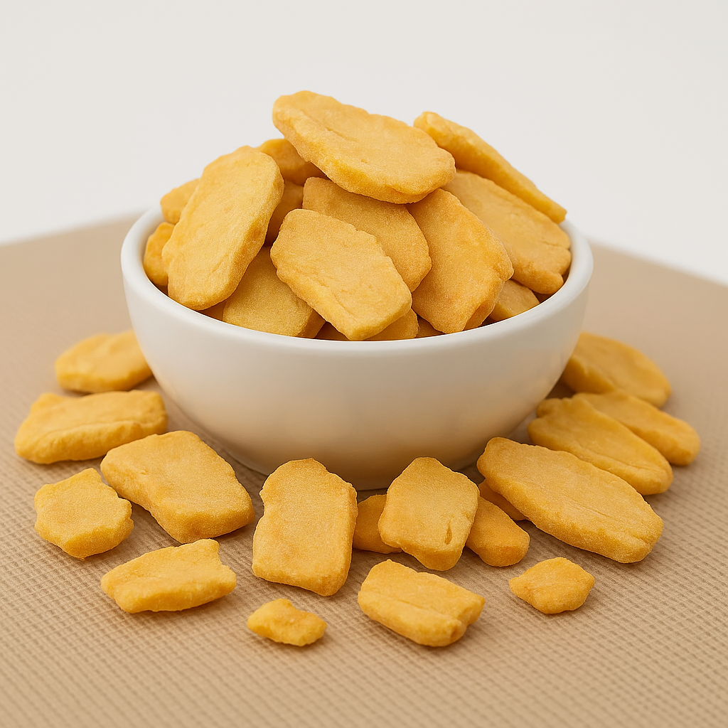 Unsere gefriergetrockneten Bio-Mangoscheiben schmecken süß und aromatisch. Sie werden aus 100 % vollreifen, frisch eingefrorenen Mangos hergestellt. Durch das schonende Verfahren der Gefriertrocknung bleiben ihre natürlichen Eigenschaften wie Form, intensive Farbe sowie fruchttypischer Geruch und Geschmack erhalten. Die farbenfrohen, gelb bis orangefarbenen Stücke sind knackig, reich an Ballaststoffen und eine hervorragende Wahl für knusprige Mischungen, innovative Dessertkreationen oder einfach als natursüßer Snack zwischendurch. So können Sie das exotische Aroma dieser beliebten Frucht das ganze Jahr über genießen. Ein Hauch von Karibik für zu Hause!
