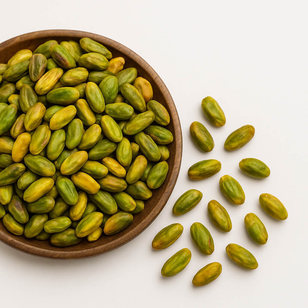 Roh oder leicht geröstet als edler Snack sowie als Dekoration oder Zutat für feine Gebäcke, Pralinen und Gerichte der orientalischen Küche.