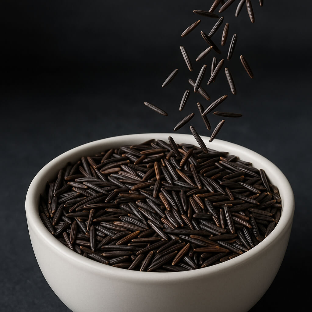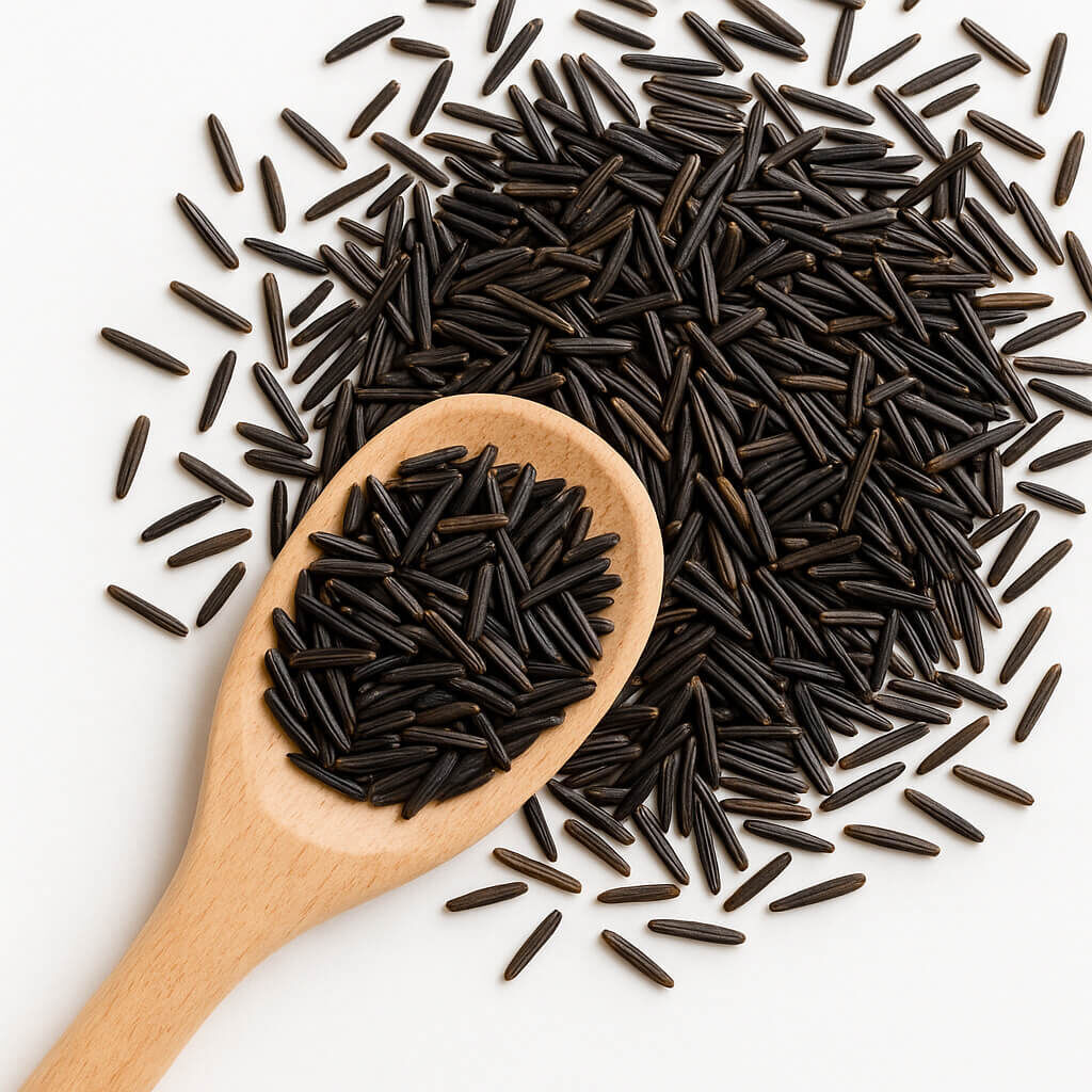 Botanisch zählt der Wildreis zwar nicht zur selben Gattung wie Reis, wird aber kulinarisch genauso angewandt und bietet eine wunderbare körnige Alternative zu dem üblicherweise eher klebrigen Reis. Die leckere Ballaststoff- und Proteinquelle bietet in herzhaften Gerichten, in Eintöpfen wie auch in exotischen Reisspeisen eine herrliche Ergänzung.