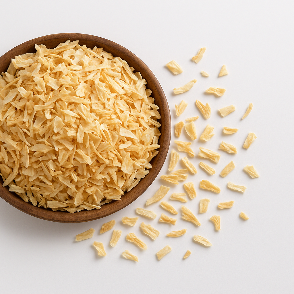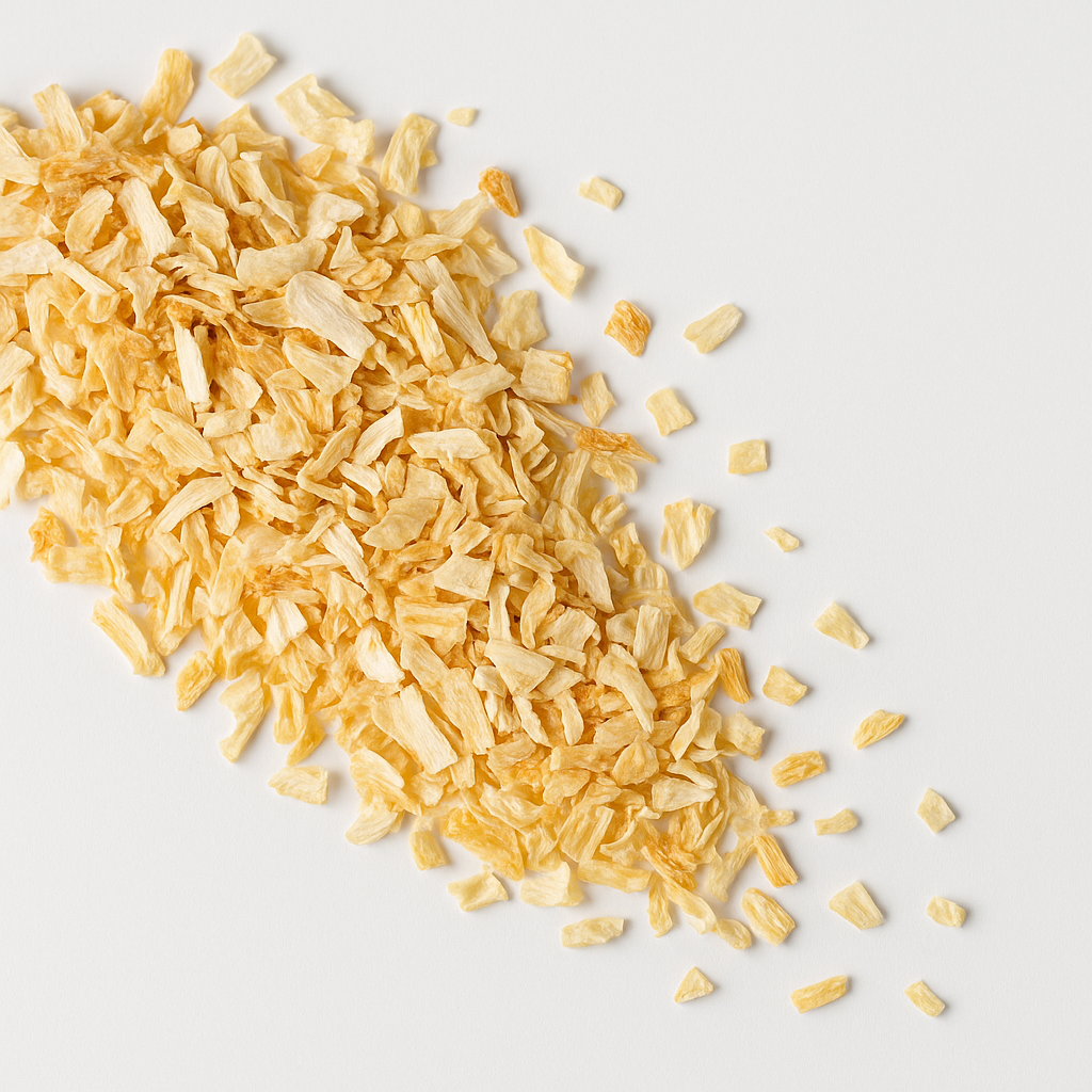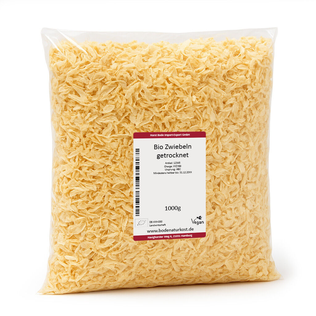 The dried onion pieces are 4 to 10 mm long and have a crunchy and crispy consistency. Their taste is sweet and mildly aromatic. They are ready to use: fine onion flavour without any chopping or tears. They are excellent for enhancing savoury baked goods, soups, vegetable, egg, and cheese dishes, casseroles, meat dishes, and tomato sauces.