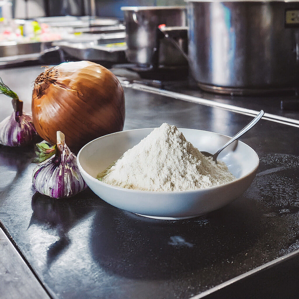 This ivory-coloured powder is made from dried, ground organic onions. With its aromatic, slightly sweet taste, this fine powder adds a rich, hearty flavour to dishes. It is particularly convenient as it saves the time and effort of peeling and chopping onions, while still allowing you to add flavour to any dish. It is therefore ideal for enhancing baked goods, soups, vegetables, eggs, cheese dishes, stews, meat dishes, dips, salad dressings and tomato sauces.