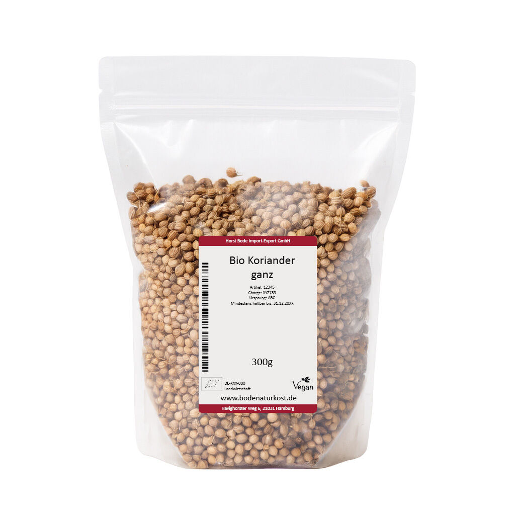 Unsere ganzen, getrockneten Bio-Koriandersamen zeichnen sich durch ihre markante gelb-bräunliche Farbe und kugelförmige Form aus. Der einzigartige süßliche, leicht zitrusartige Geschmack, macht sie zu einem unverzichtbaren Bestandteil in der indischen, arabischen und asiatischen Küche. Oftmals werden sie mit weiteren Gewürzen wie Muskatnuss, Fenchel, Pfeffer, Chili, Nelken, Ingwer und Kreuzkümmel kombiniert, um ein komplexes und vielschichtiges Aroma zu erzeugen. Aber nicht nur in herzhaften Gerichten finden sie ihren Platz sondern auch in Backwaren wie Sauerteigbroten und Weihnachtsgebäck. Für diejenigen, die eine feinere Textur bevorzugen, bieten wir auch gemahlenen Koriander in unserem Shop an.