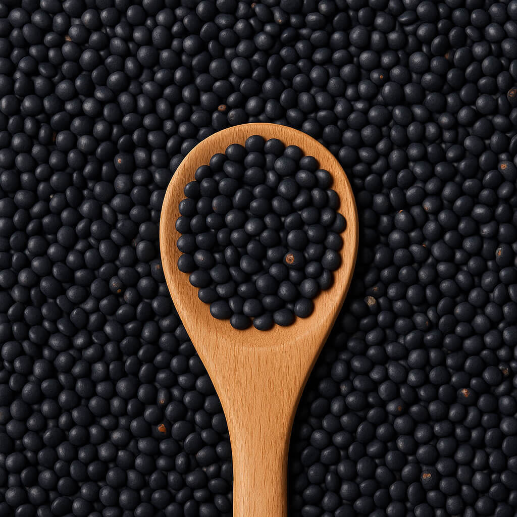 Mature, dried black Beluga lentils with a firm texture. These noble, small-grained Canadian lentils have a delicate nutty flavour and are ideal as a side dish, for soups, salads, and stews.