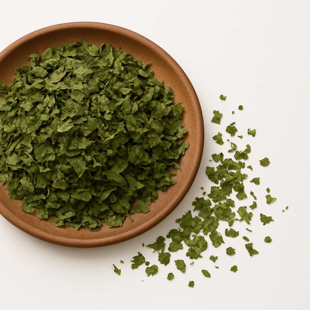 The dried and crumbled lovage leaves are dark green and have a deliciously aromatic, spicy flavour. They pair exceptionally well with vegetables such as tomatoes and salad, and add a delightful seasoning to meat and fish dishes.
