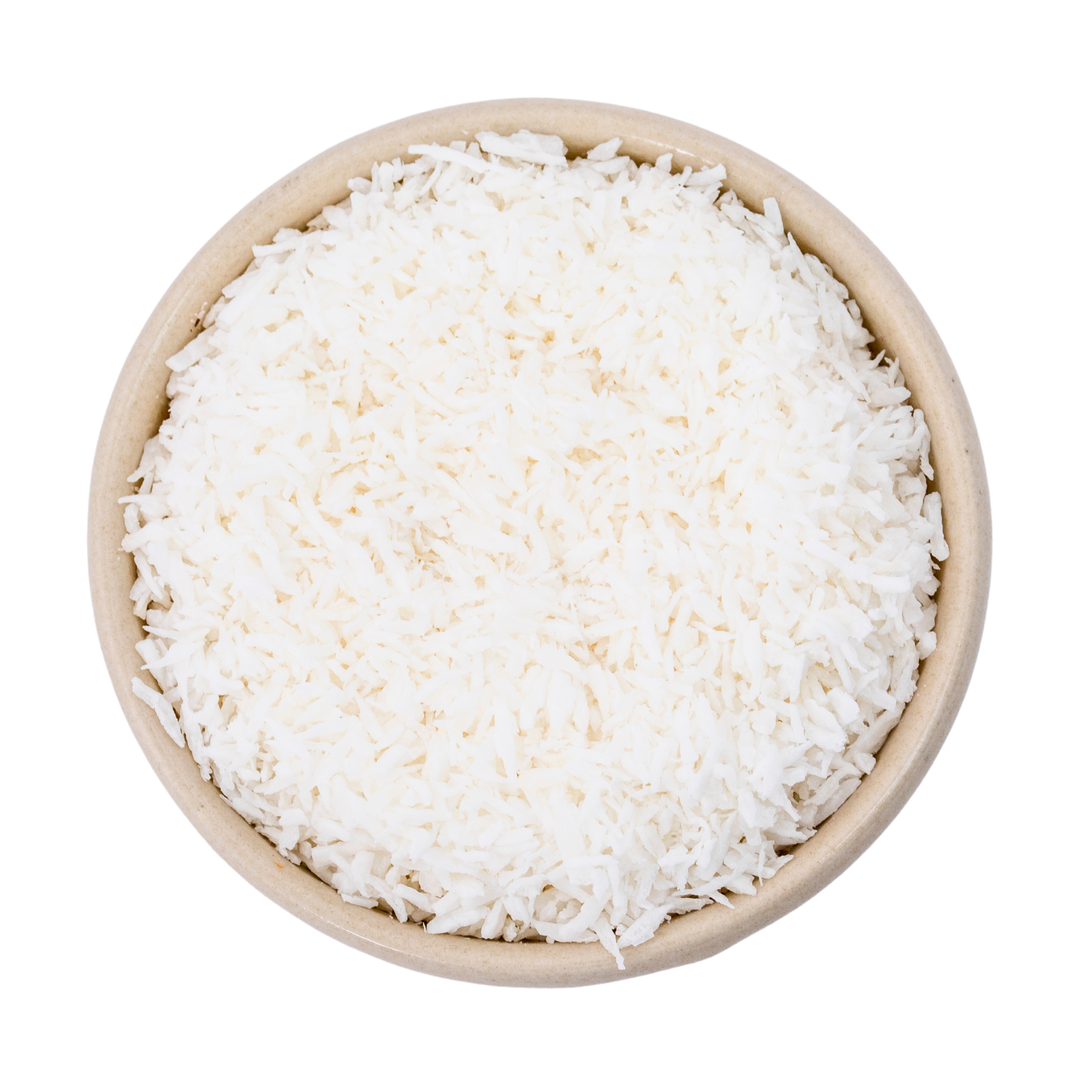 Medium-sized, creamy-white shredded coconut with a firm texture and mildly sweet, milky flavour. Rich in fibre, these shreds are perfect for baking, cooking, and garnishing sweet pastries, fruit salads, and other desserts.