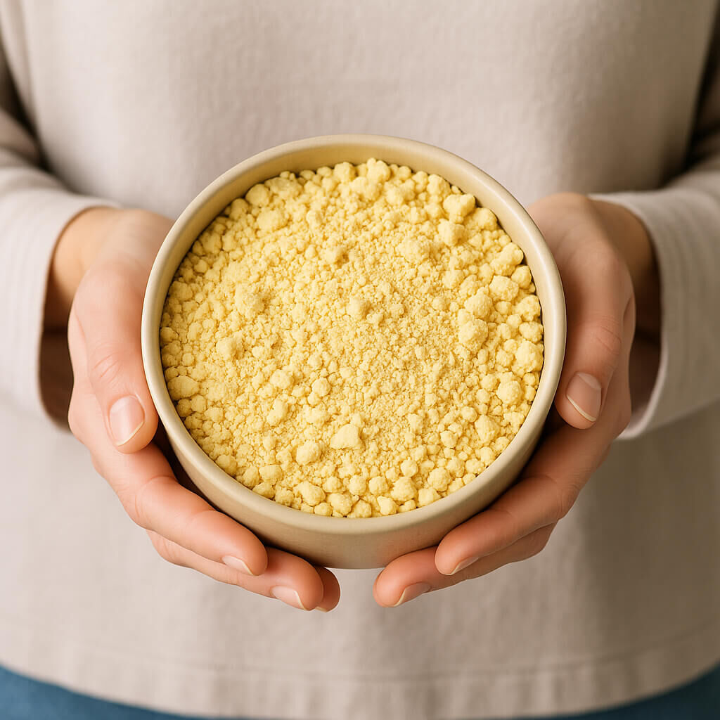 Its mild flavour makes our organic soya flour perfect for a wide range of baked goods, such as bread, biscuits, and cakes. It is also ideal for thickening sauces and soups or as an egg substitute. One tablespoon of organic soya flour mixed with two tablespoons of water can replace one egg. This makes vegan baking a breeze. Find more protein-rich flours in our shop: Organic Sweet Lupin Flour and Organic Chickpea Flour.