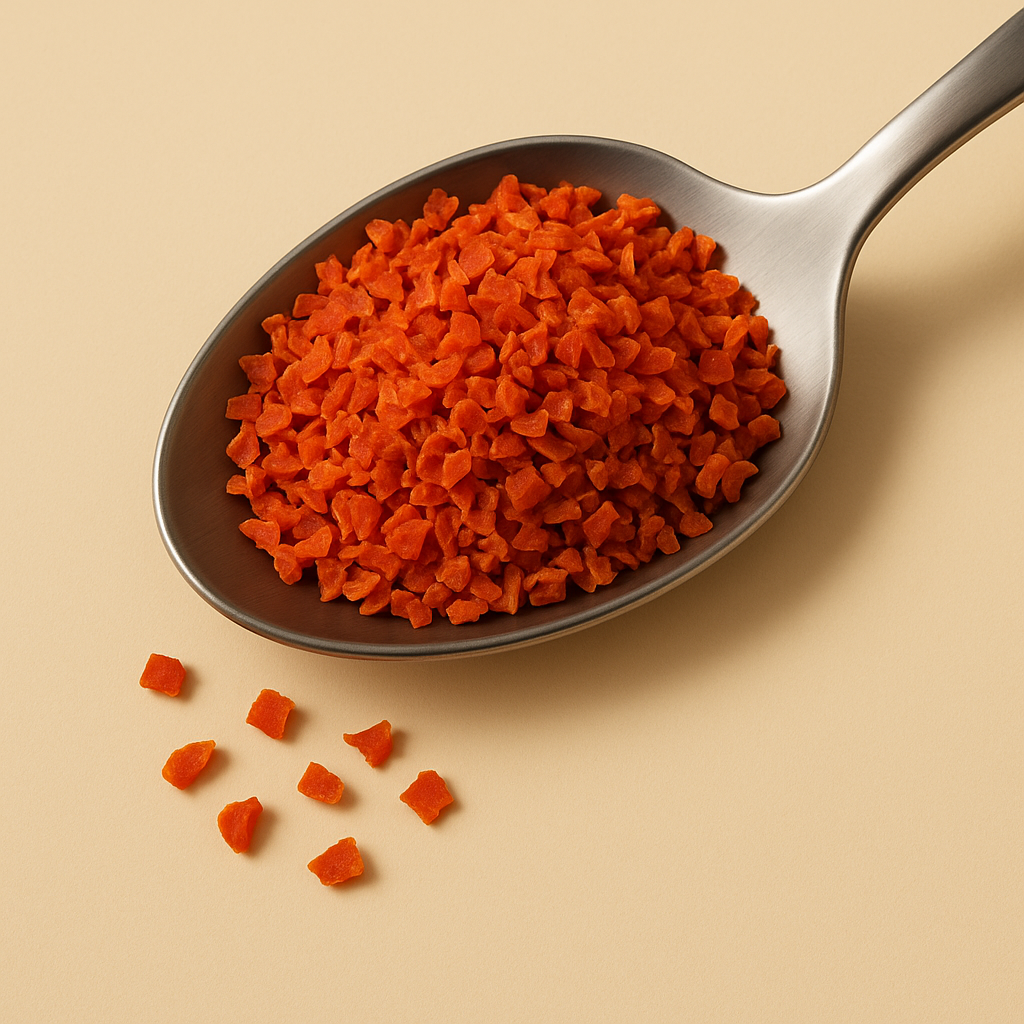 These organic carrot granulate can be used to make instant meals or for cooking.