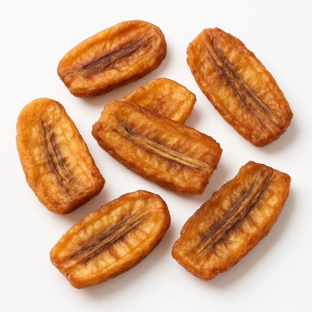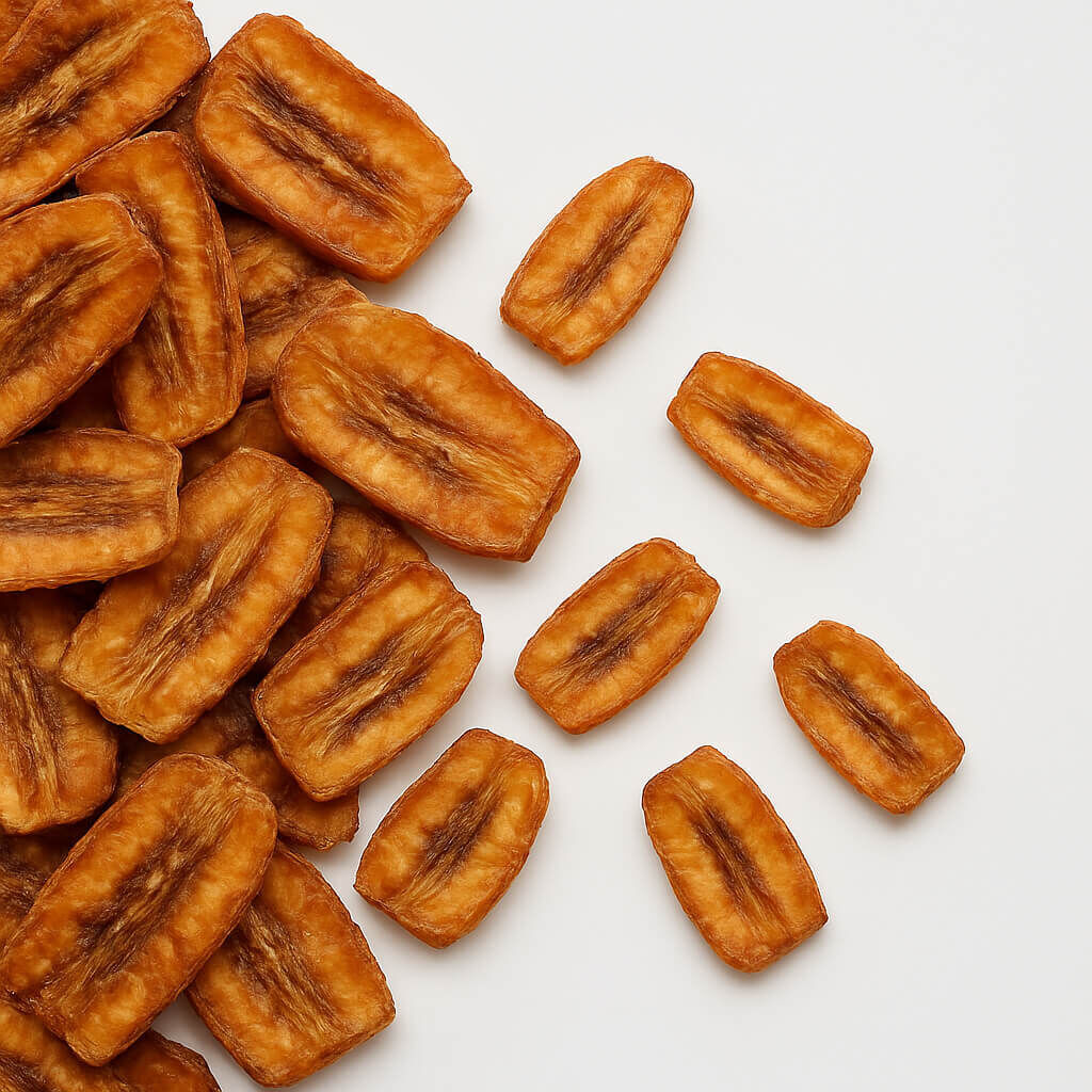 Dried banana pieces, also known as chunks. They are light to dark brown, medium-soft and have a deliciously sweet, fruity taste. These bananas are perfect for a pure snack, in mixes, and for cooking and baking.