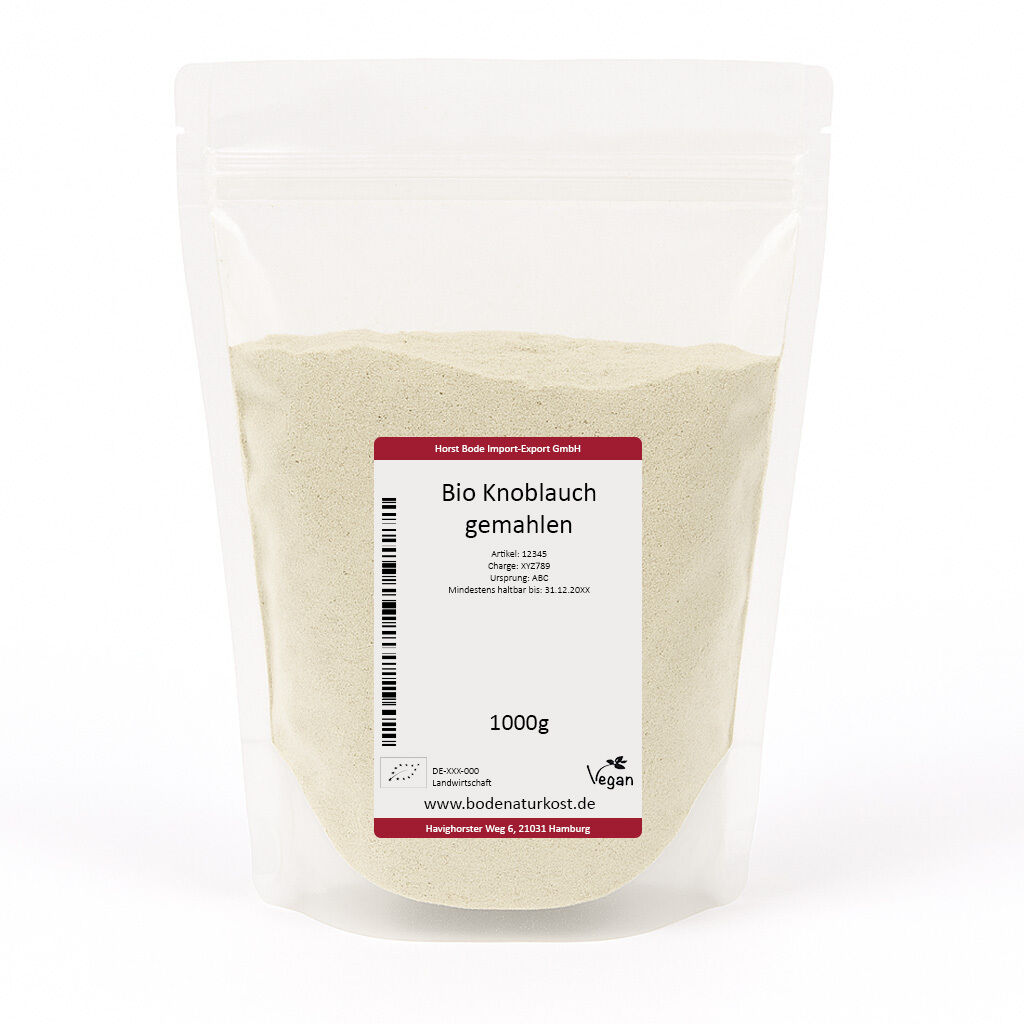 Garlic is a bulbous plant with a pungent smell and taste, having a lauch-like aroma, sharp and spicy. Fresh garlic is carefully selected, cleaned, dried and finely ground. As a powder, it is an essential ingredient in many Mediterranean, Indian, and Oriental spice blends, as it complements other spices perfectly. It is the ideal culinary finishing touch for all savoury dishes such as soups, meat, fish, pasta, rice, and potato dishes, salad dressings, and much more. The powder is easy to store and convenient to use when time is short or fresh garlic is not available. Please store in a well-sealed container to keep the surroundings odour-free and the powder easily dosable, as it tends to clump under the influence of moisture.
