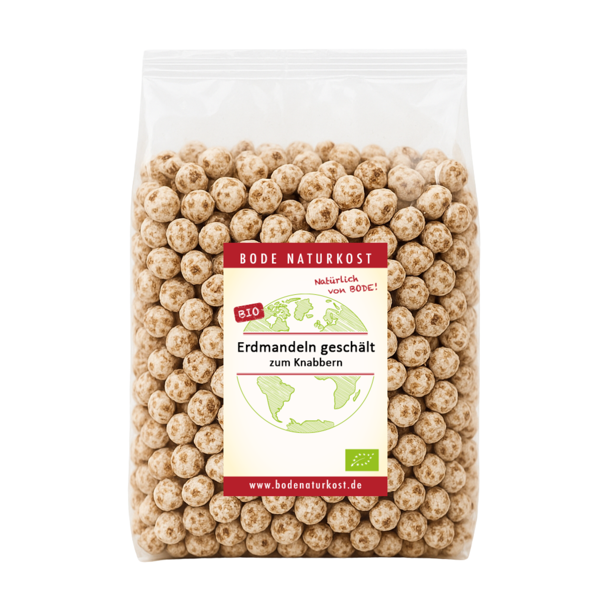 Discover the sweet and delicate flavour of our tiger nuts, also known as tigernuts or chufa. This tuberous fruit of the tiger nut grass is not a nut, but offers plenty of fibre and a tasty alternative to conventional nuts. This valuable tuberous fruit has been valued and utilised on the African continent for centuries. Its versatile uses make it an attractive ingredient in your kitchen. Whether as a substitute for nuts in baking or cooking, or for making the traditional Spanish tigernut milk ‘horchata’, our tigernuts are an enrichment for your culinary creations.