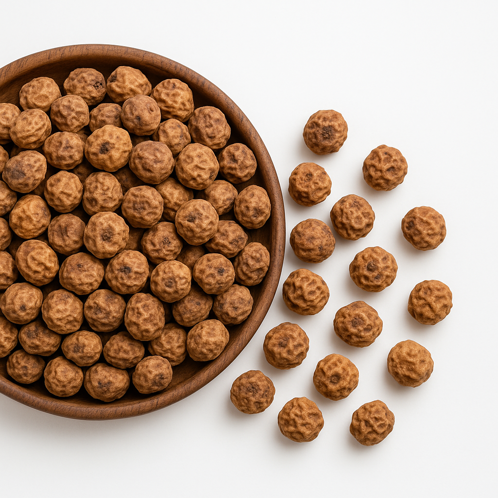 These sweet, delicate tuberous fruits are not nuts! Suitable for pressing oil, making tiger nut milk, flour and flakes. They become hard after drying and transform into a soft fruit after soaking for at least four hours.