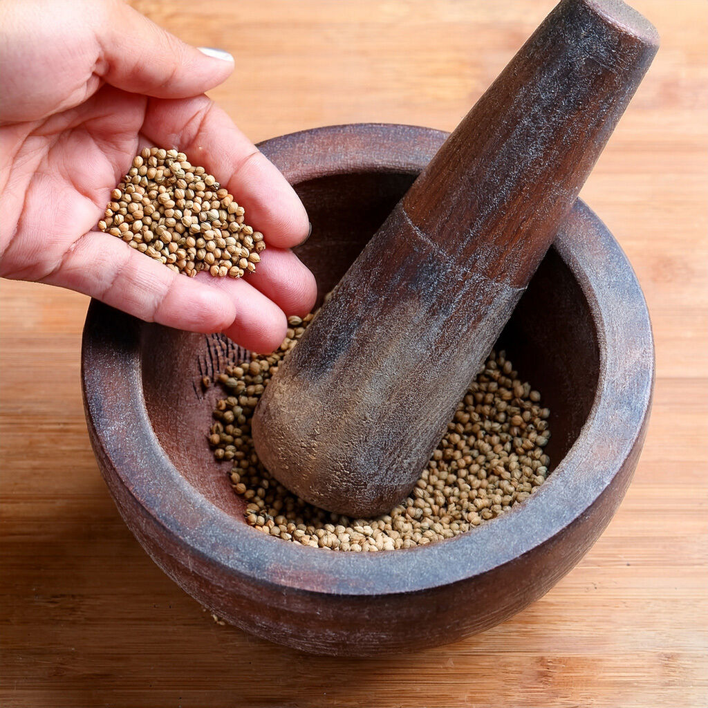 These whole dried coriander seeds boast a yellow-brown hue, are spherical in shape, and have a flavour reminiscent of mustard. Coriander is a staple in Indian, Arabic, and Asian cuisines, often paired with nutmeg, fennel, pepper, chilli, cloves, ginger, and cumin. It also finds its way into baked goods, such as spice blends for sourdough bread and Christmas treats. You can also find organic ground coriander in our shop.