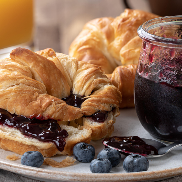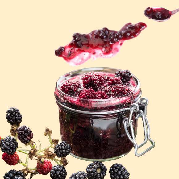Organic Forest Berry Jam made from blueberries, blackberries, and raspberries with a minimum fruit content of 35%, sweetened with German beet sugar. This fruity, sweet-and-sour, dark blue jam with fine pieces is perfect as a bread spread or for enhancing baked goods and desserts.